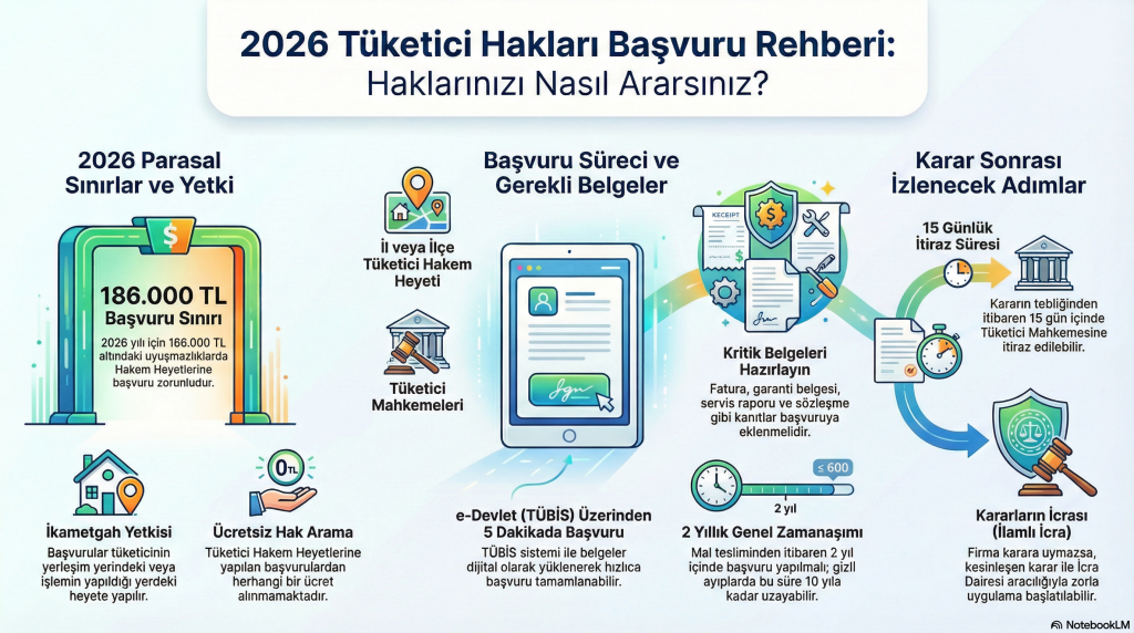 İnternetten aldığınız bir ürün bozuk mu çıktı? Bir firma iade talebinizi redd mi etti? Türkiye Cumhuriyeti yasaları, tüketicileri bu tür mağduriyetlere karşı Tüketici Hakem Heyetleri ile koruma altına almıştır. 2026 yılı itibarıyla tamamen dijitalleşen ve başvuru limitleri güncellenen bu sistem, mahkemeye gitmeden, avukat ücreti ödemeden hak aramanıza olanak tanır. Bu rehberde, e-Devlet üzerinden adım adım nasıl başvuru yapacağınızı ve paranızı geri almanın yollarını anlatıyoruz.